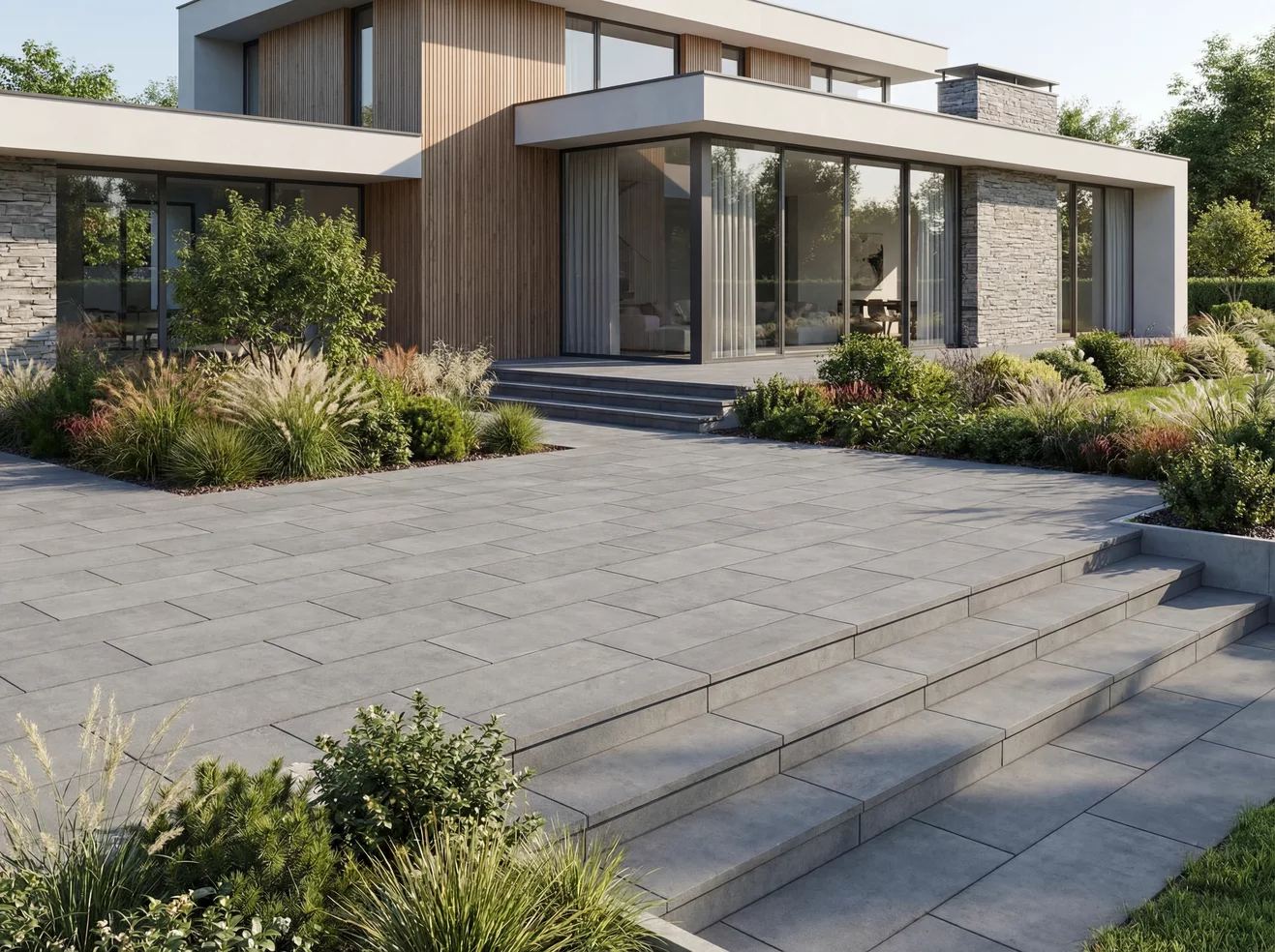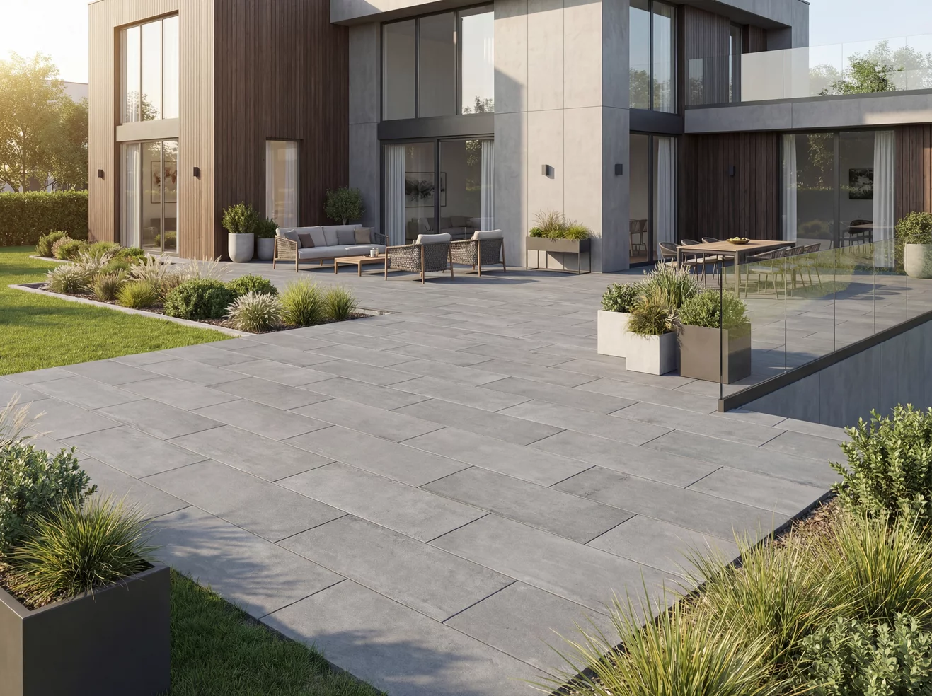 Polbruk Bosso Mezzo to nowoczesna płyta betonowa o uniwersalnym formacie 60×30 cm, idealna do tarasów, ścieżek ogrodowych i stref wypoczynkowych. Dostępna w trzech efektownych wykończeniach – gładkim melanżu, gładkim monokolorze oraz drobnołupanej strukturze. Stonowane odcienie szarości podkreślają elegancki charakter przestrzeni, a grubość 4,5 cm zapewnia trwałość i komfort użytkowania na nawierzchniach o ruchu pieszym. Bosso Mezzo to idealne rozwiązanie dla osób poszukujących stylowej, odpornej i łatwej w aranżacji płyty tarasowej.