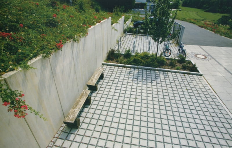 Kostka Ażurowa Eqol Retencja+ to ekologiczna kostka, która doskonale sprawdza się na parkingach i podjazdach. Jej minimalistyczny charakter stanowi doskonałe tło dla nowoczesnej architektury. Przestrzeń bioaktywną wyznaczają wypustki umieszczone na bokach kostek.