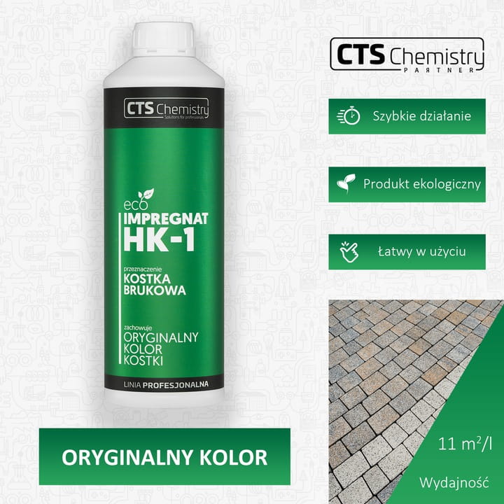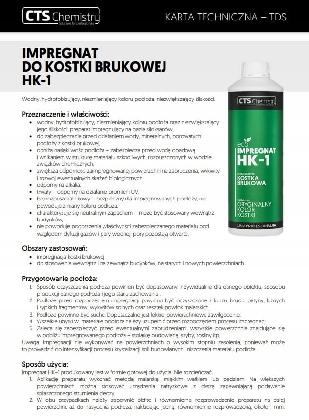IMPREGNAT DO KOSTKI BRUKOWEJ HK-1 (oryginalny kolor kostki) to wodny, hydrofobizujący preparat, niezmieniający koloru kostki.