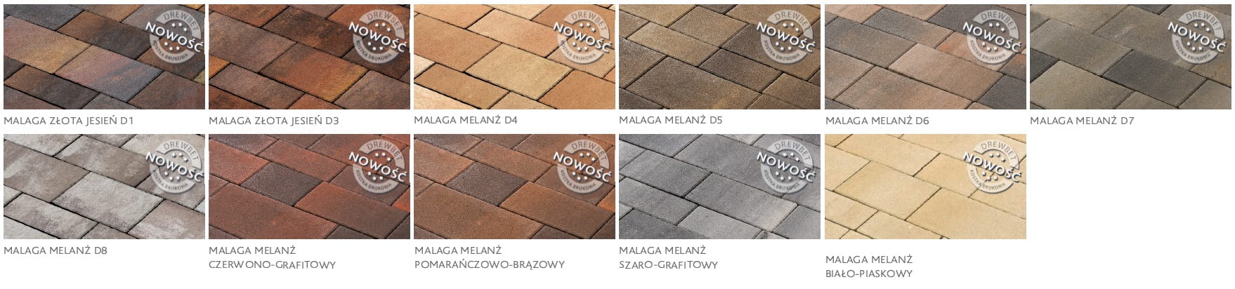 DREWBET® MALAGA to układ kilku kostek o różnych wielkościach z mikrofazą, dający nieograniczone możliwości aranżacji. Nawierzchnie wykonane z kostki DREWBET® MALAGA cechują się wyjątkową estetyką i ponadczasową formą.