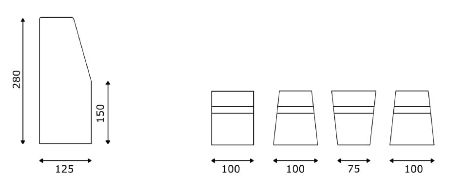 Ilość elementów w rzędzie: 3 trapezowe, 4 prostokątne