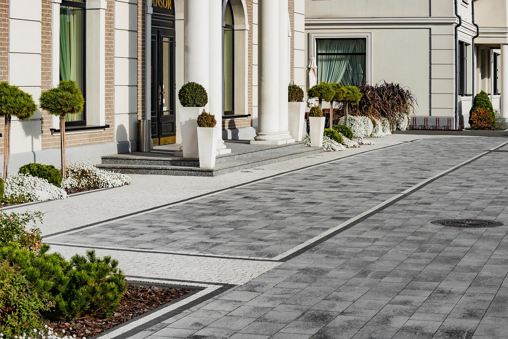 Umbriano to kostki brukowe średniego formatu, bezfazowe, przeznaczone na podjazdy i ścieżki. Wierzchnia impregnacja płyty podwyższa znacząco poziom ochrony przed zabrudzeniami, odporność na mróz i sole odladzające. Proces hydrofobizacji, któremu poddane są płyty podczas produkcji ogranicza wchłanianie wilgoci z opadów deszczu lub gruntu co wyraźnie redukuje naturalne wykwity wapienne. Innowacyjna technologia barwienia Colorfusion sprawia, że na powierzchni płyt widoczne są ziarniste żyłki nadające wyjątkowy charakter nawierzchni. Kostki z dystansami ułatwiającymi układanie.