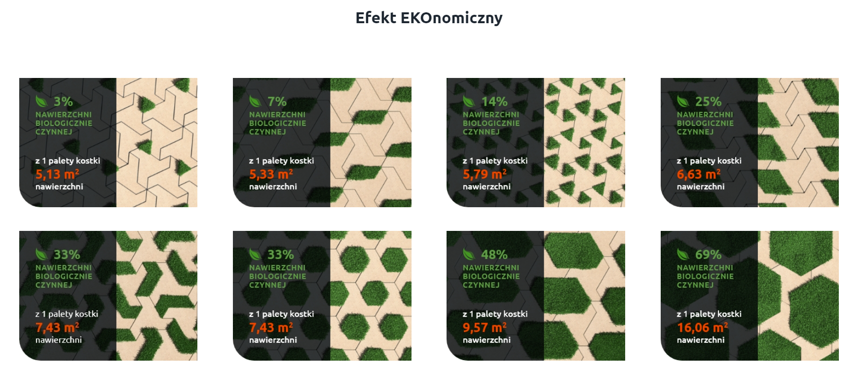 Vjetra® to również ekosposób na oszczędzanie! W zależności od sposobu ułożenia z 1m2 kostki możesz zabudować niemal 2m2 nawierzchni!